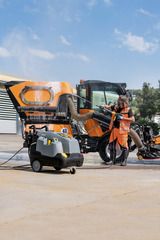 Efficiency eco!efficiency mode – economical and environmentally friendly, even during longer periods of use. Reduces fuel consumption and CO2 emissions by 20%. Accurate cleaning agent dosing unit with clear rinse function. Ease of use Intuitive operation with large single-button selector switch. ??Large tank opening with filling chute. System care bottle can be changed conveniently from the outside. Storage Lockable accessory compartment for nozzles, tools, etc. Storage hooks for power cord and high-pressure hose. Integrated lance fixation for easy transport. Reliability The Soft Damping System (SDS) compensates for vibration and pressure peaks in the high-pressure system. Large water filter protects pump against damage. Water softening system to protect the heating coil against calcification. Mobility "Jogger" design with large wheels and steering roller. Large integrated handles in the chassis. Integrated tilting aid for effortlessly negotiating obstacles such as steps and kerbs. Save energy and time: EASY!Force high-pressure gun and EASY!Lock quick-release fasteners At last – work without getting tired: the EASY!Force high-pressure gun. EASY!Lock quick-release fasteners: durable and robust. And five times faster than screws.